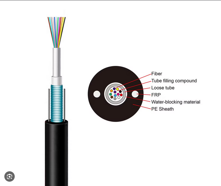 Ce câble est destiné à des applications extérieures, dans les conduits ou pour l’enterrement direct (fibre de verre assemblée autour du tube central servant de protection anti-rongeur et de barrière contre l’humidité). Le tube central en PBT contient jusqu’à 12 brins colorés, pour une identification facile. Il est rempli de gel auto bloquant thixotropique pour éviter les infiltrations d’eau. Deux filins de déchirement sont positionnés à 180° pour faciliter le dégainage. La protection finale est assurée par une gaine PEHD résistante aux UV.