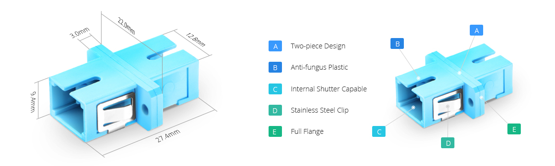 Coupleur fibre optique SC MM OM3 Simplex – Aqua